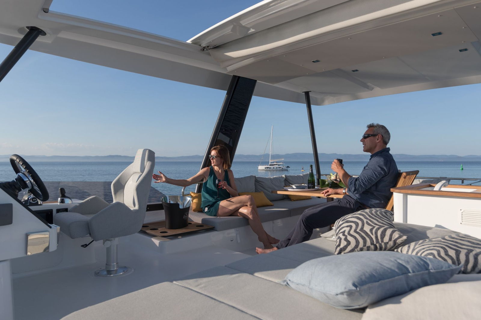 Na vaše vysněné líbánky vás odveze luxusní klimatizovaný katamarán, který nabízí spoustu prostoru a ubytování srovnatelné se špičkovým hotelem. K dispozici budete mít moderně vybavený salon s kuchyňským koutek a jídelnou, komfortní kajuty i relaxační a opalovací prostory na zádi, přídi, ale především na horní palubě lodi. Na všech těchto místech si můžete užívat plavbu, kochat se výhledem do všech světových stran a vychutnávat si skvělé jídlo a pití.