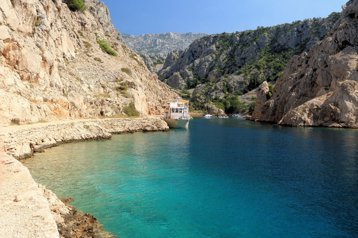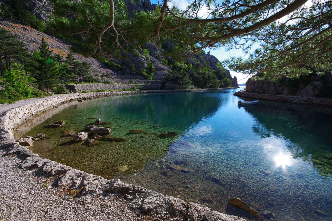 Tenhle úchvatný záliv najdete na pevnině, přímo naproti ostrovu Rab (poblíž městečka Jablanac). Zátoka je uzoučká, vine se asi kilometr do vnitrozemí a lemují ji impozantní, až dvě stě metrů vysoké skály pohoří Velebit. Nabízí krásné koupání v klidné vodě bez vln, ale je to také parádní lokalita pro šnorchlování! Největším tahákem pro potápěče je vrak německé válečné lodi, kterou potopili Spojenci během druhé světové války. Na rozdíl od jiných vraků, ke kterým se musíte potápět i desítky metrů hluboko, tahle loď leží jen několik metrů pod hladinou, takže ji můžete prozkoumat i se šnorchlem a ploutvemi. I proto jde o skvělou atrakci pro děti – co kdyby opravdu našli nějaký pohřbený poklad? V Zavratnici doporučujeme zakotvit ráno, nebo naopak později odpoledne, kdy tu je největší klid.