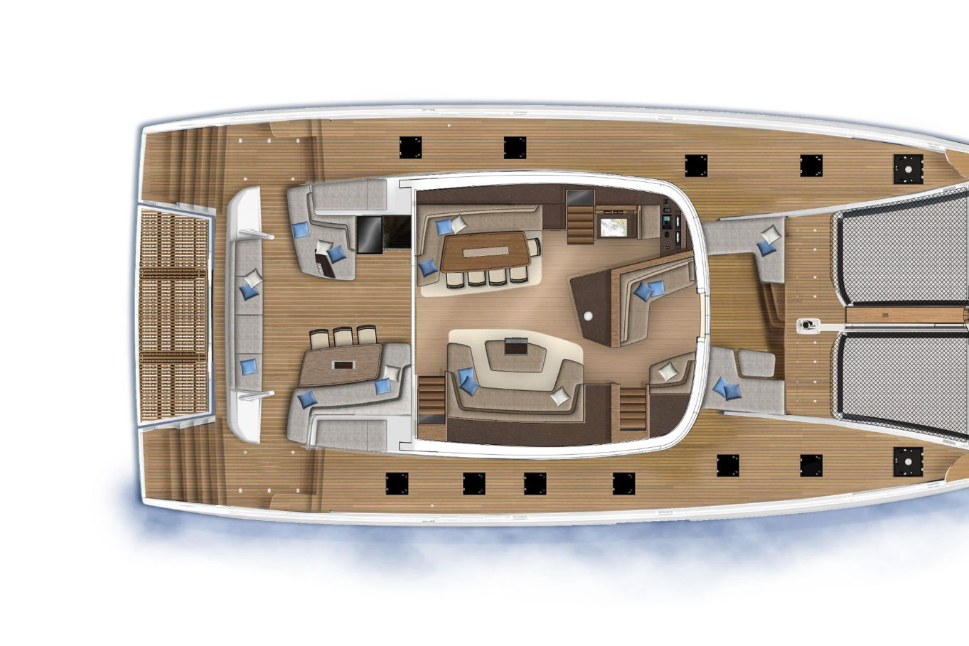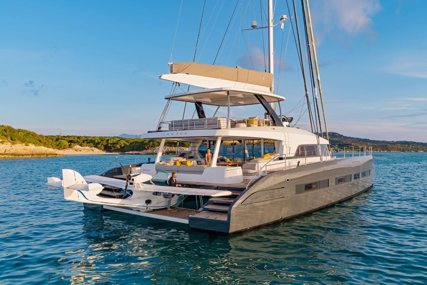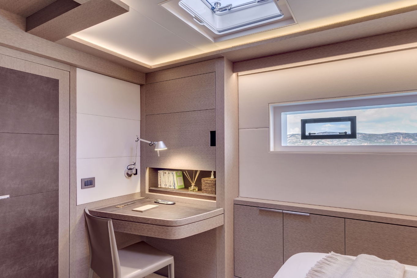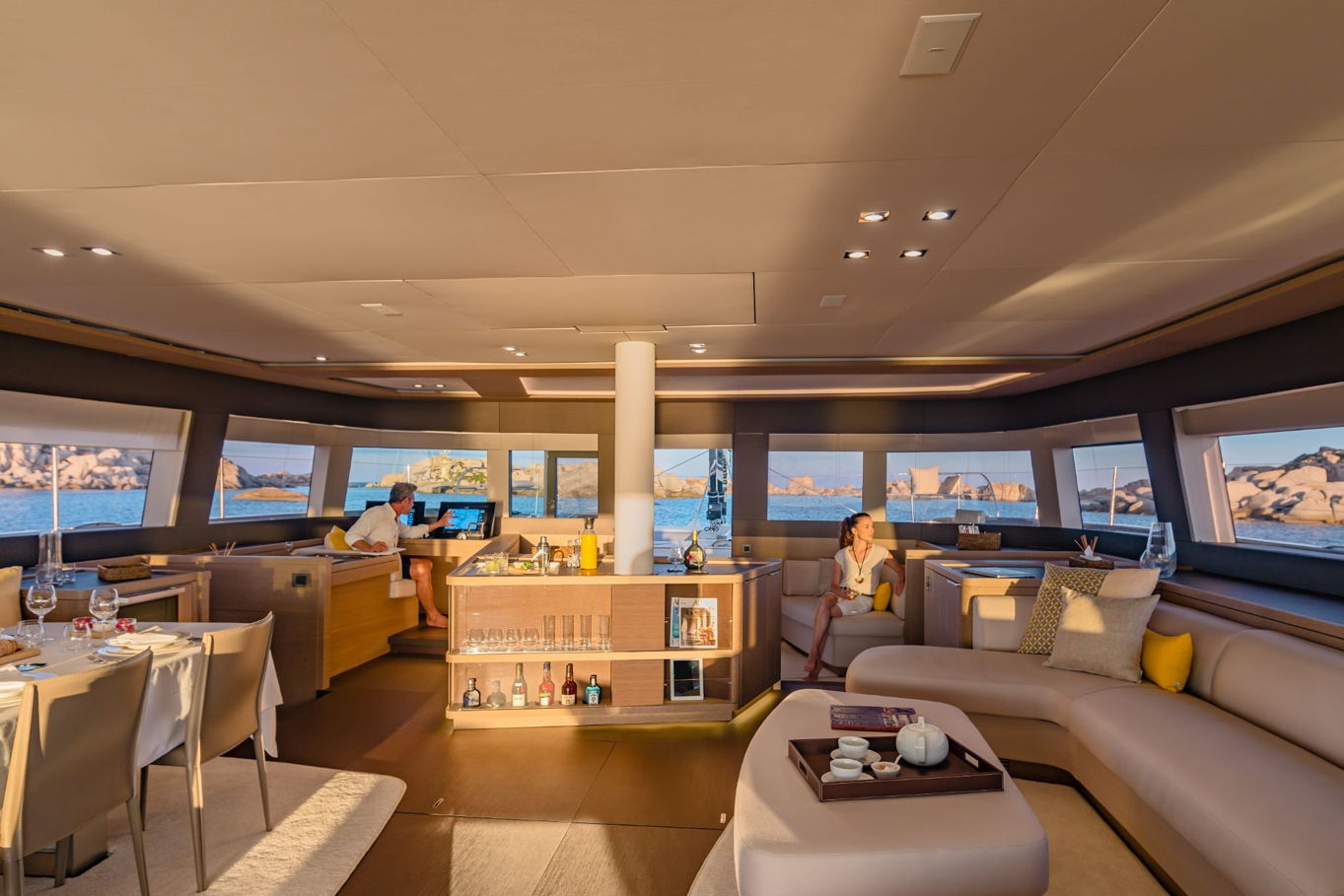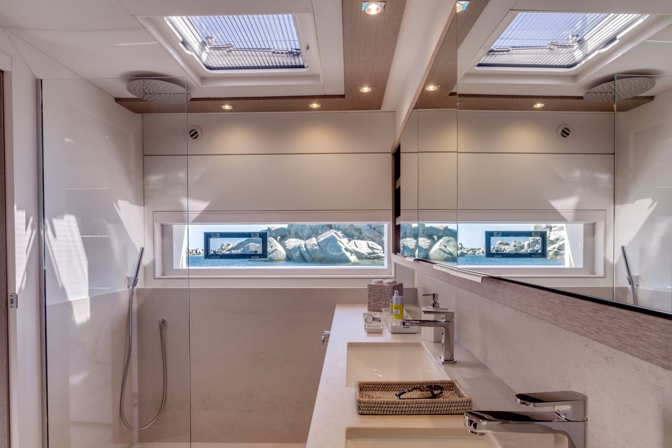 The spacious common salon is characteristic by its big and thoughtfully located windows, which provide you with an amazing panoramic view, therefore, you can enjoy a perfect experience even from the inside of the boat. Do you plan to spend a cruise with your family and be sure that your children have the best time as well? The prow of this beautiful catamaran is equipped with modern trampolines that doubtlessly entertain (not only) the children’s part of your crew. Stop dreaming about a perfect holiday, experience it with the Lagoon Seventy 7.