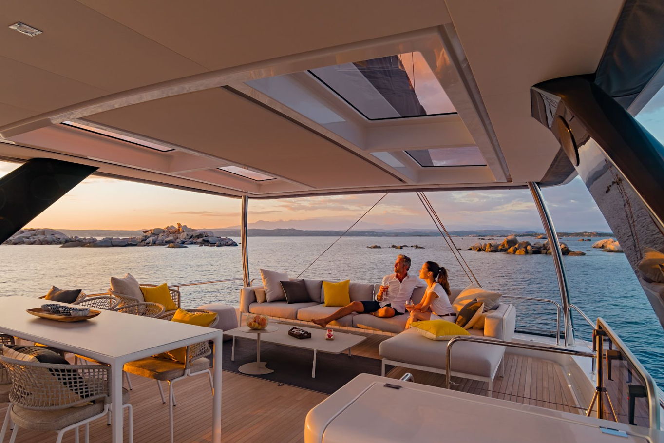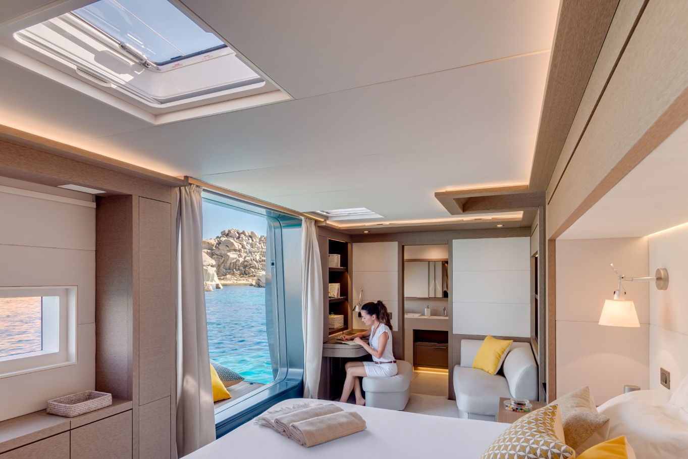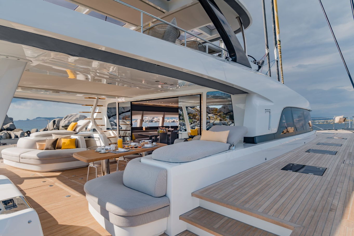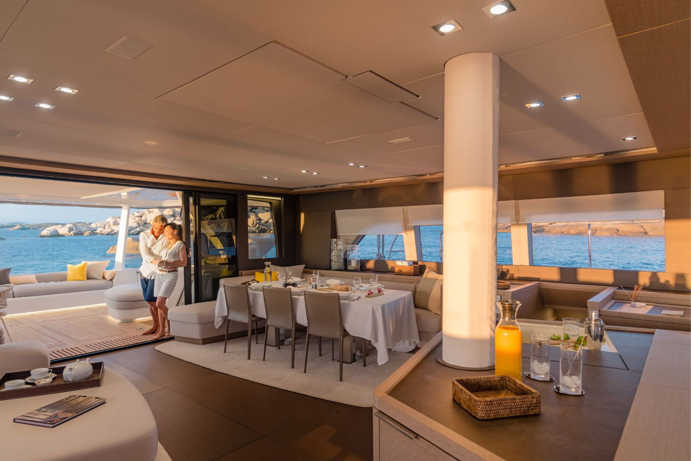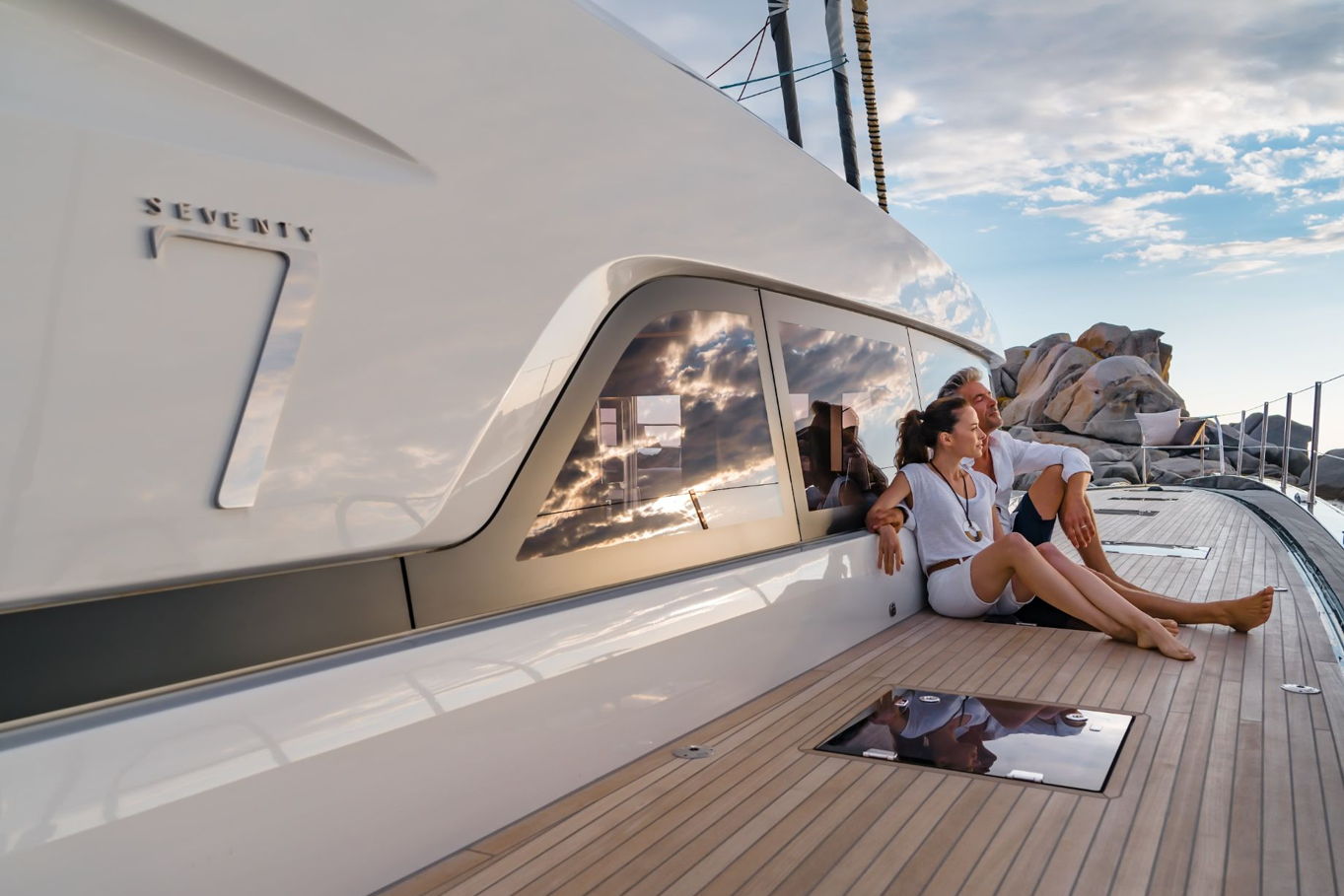 The spacious common salon is characteristic by its big and thoughtfully located windows, which provide you with an amazing panoramic view, therefore, you can enjoy a perfect experience even from the inside of the boat. Do you plan to spend a cruise with your family and be sure that your children have the best time as well? The prow of this beautiful catamaran is equipped with modern trampolines that doubtlessly entertain (not only) the children’s part of your crew. Stop dreaming about a perfect holiday, experience it with the Lagoon Seventy 7.