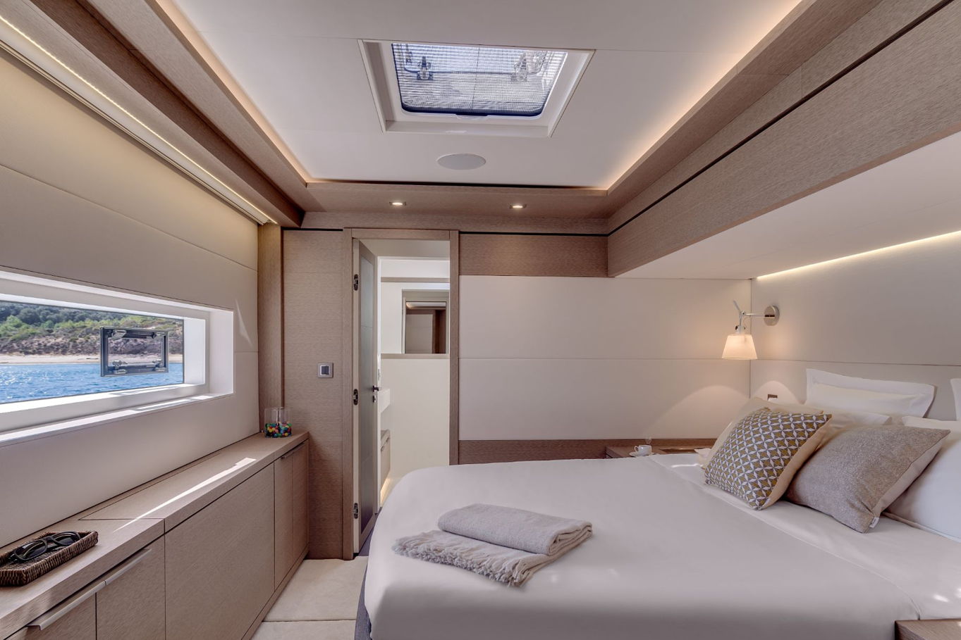 Imagine the luxury and comfort of a 5* hotel, sea wind in your hair and an unforgettable experience from sailing on a boat. Thanks to a holiday spend on the Lagoon Seventy 7 you can have all of it and much more. This unique catamaran is designed so it satisfies even the most demanding clients. It is equipped with 4 big double-bed cabins, which are the perfect showcase of a combination of elegance and functioning. In each, you can find bed tables and a lot of storage space. Moreover, all of these cabins are connected to their private bathrooms and hence maximum of your comfort and privacy is ensured.