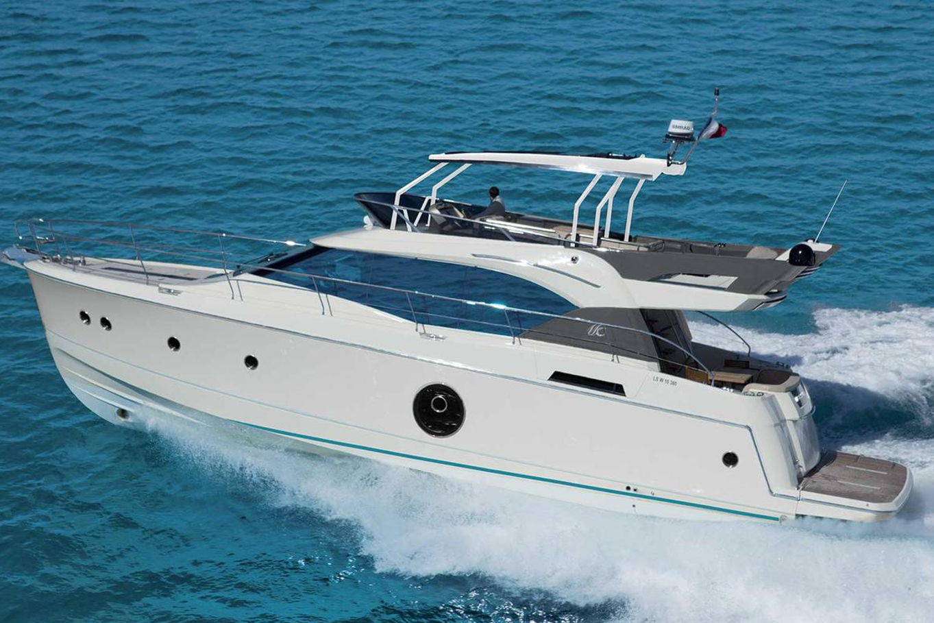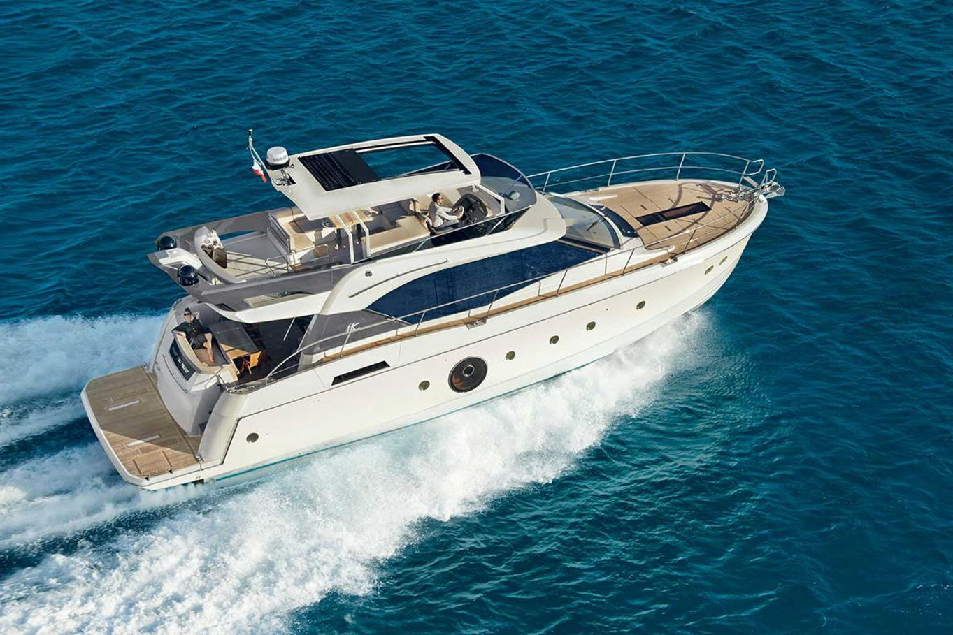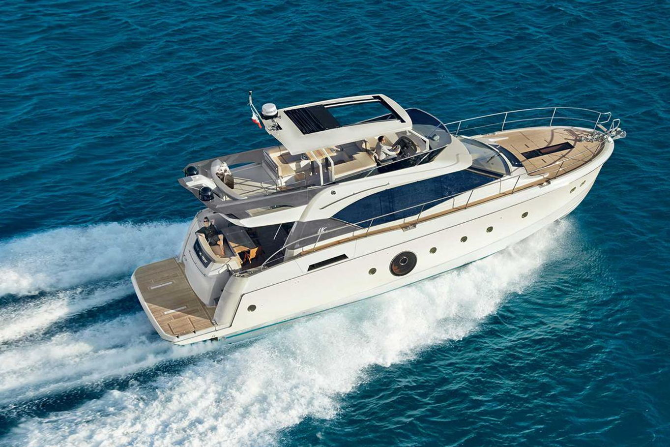The Monte Carlo 6’s has an attractively flared hull design and round elegantly crafted portholes – the hallmark of the yacht tradition. She is equipped with two engines and luxurious living space on the flybridge.