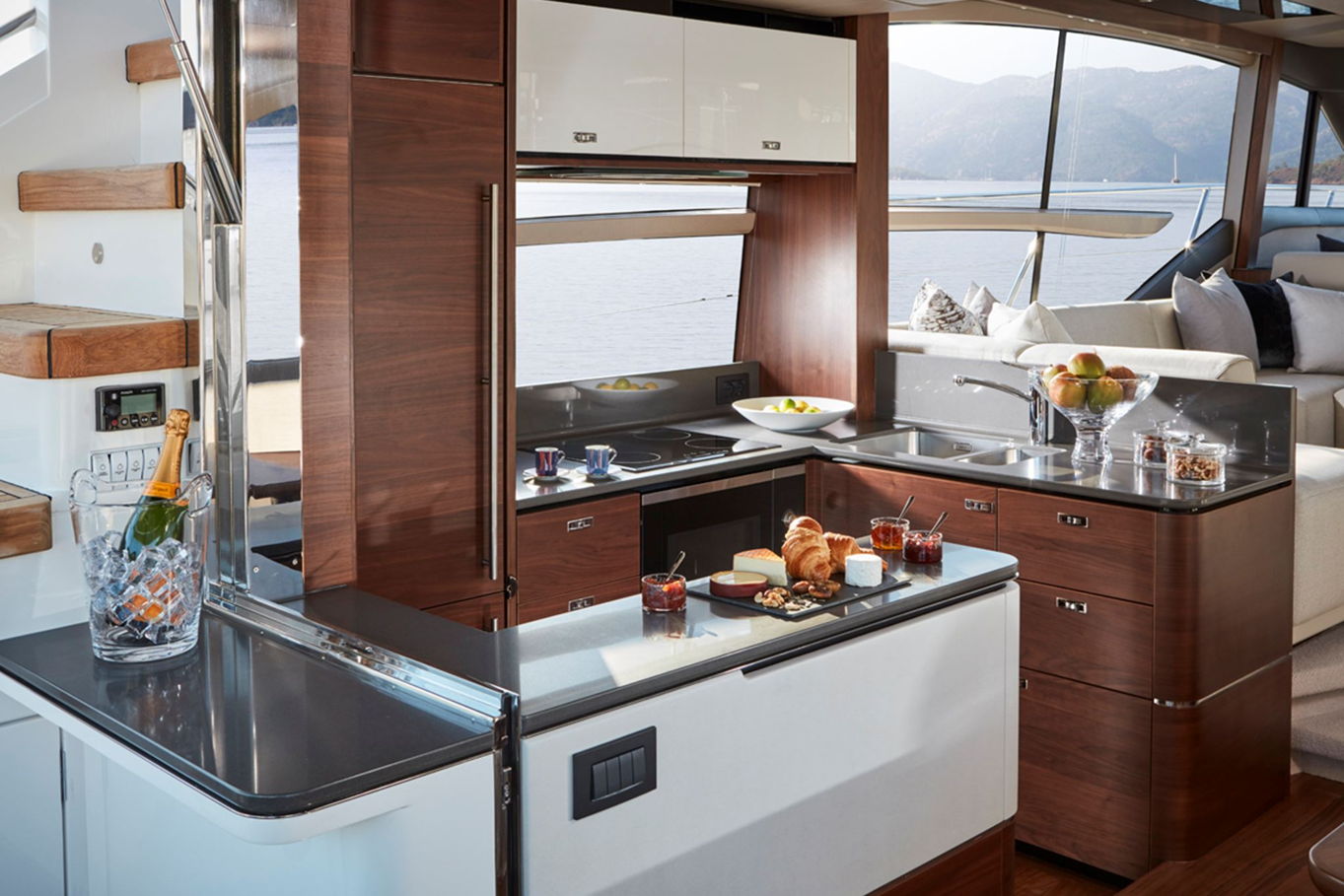 There is a comfortable seating area which can be found as standard at the back of the boat and on the roofed upper deck. There are also sunbathing mats and a barbecue on the so called fly-bridge. From here you can enjoy the most beautiful views of the sea and coast line.