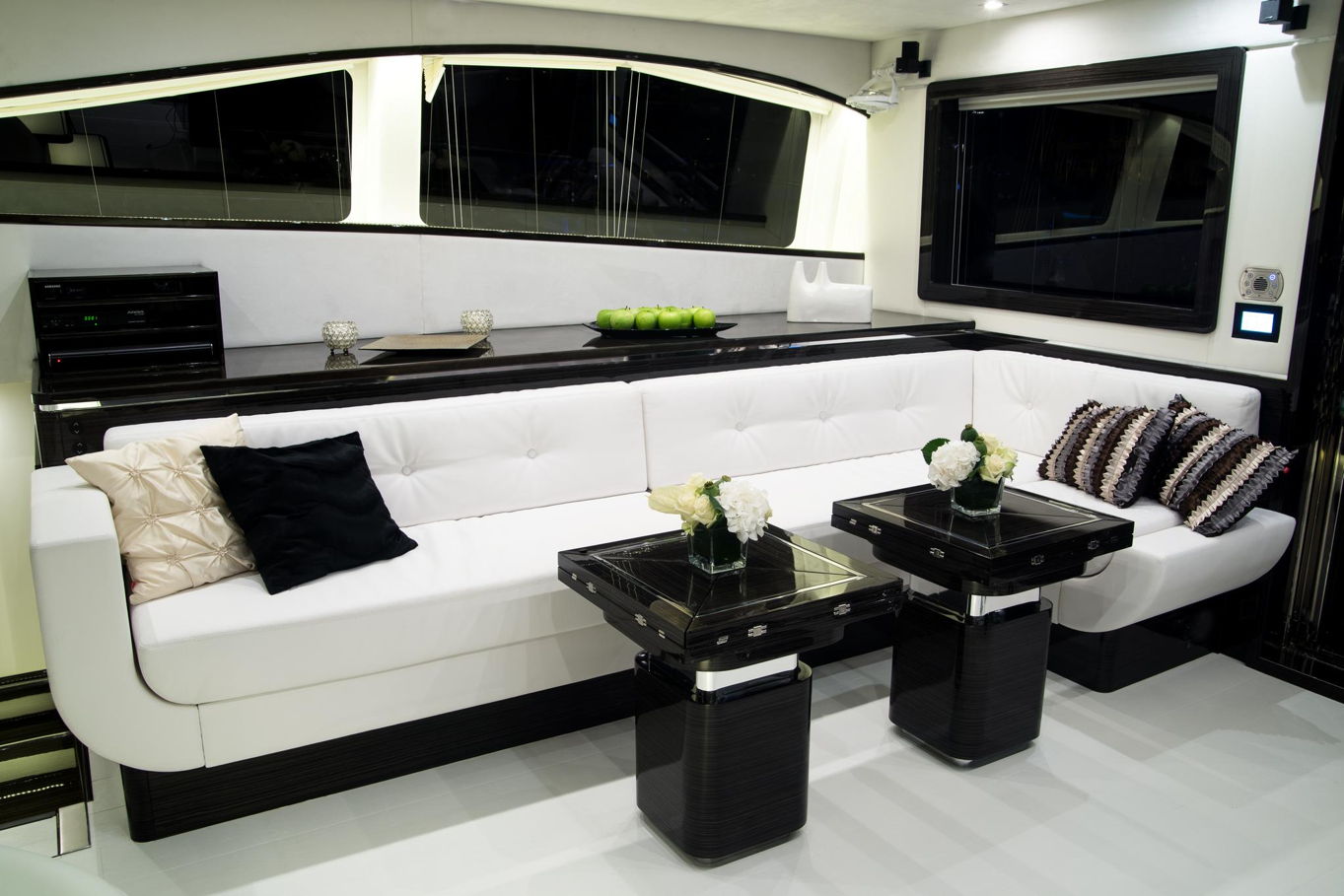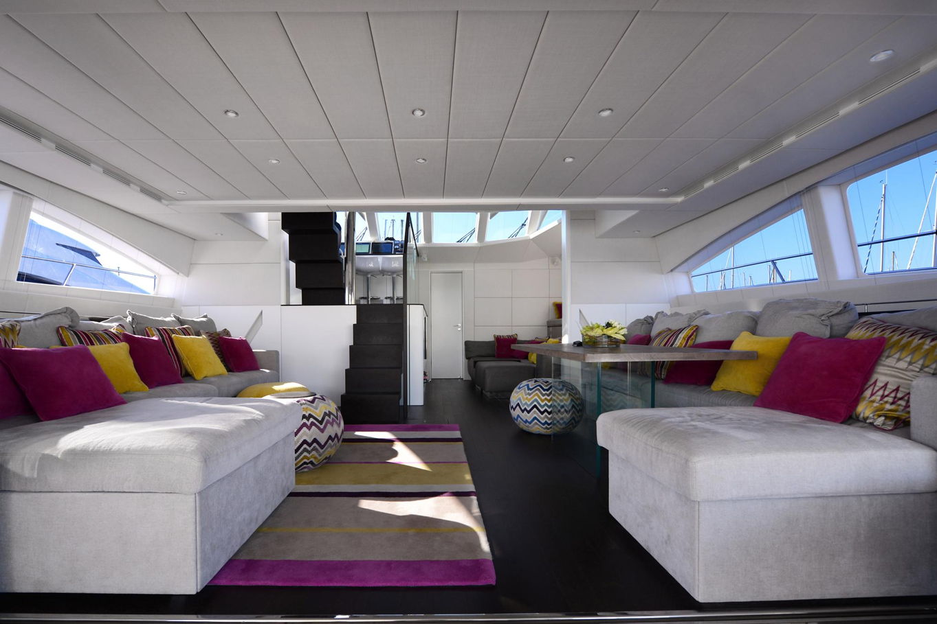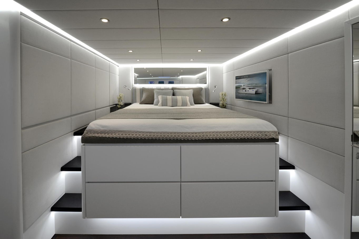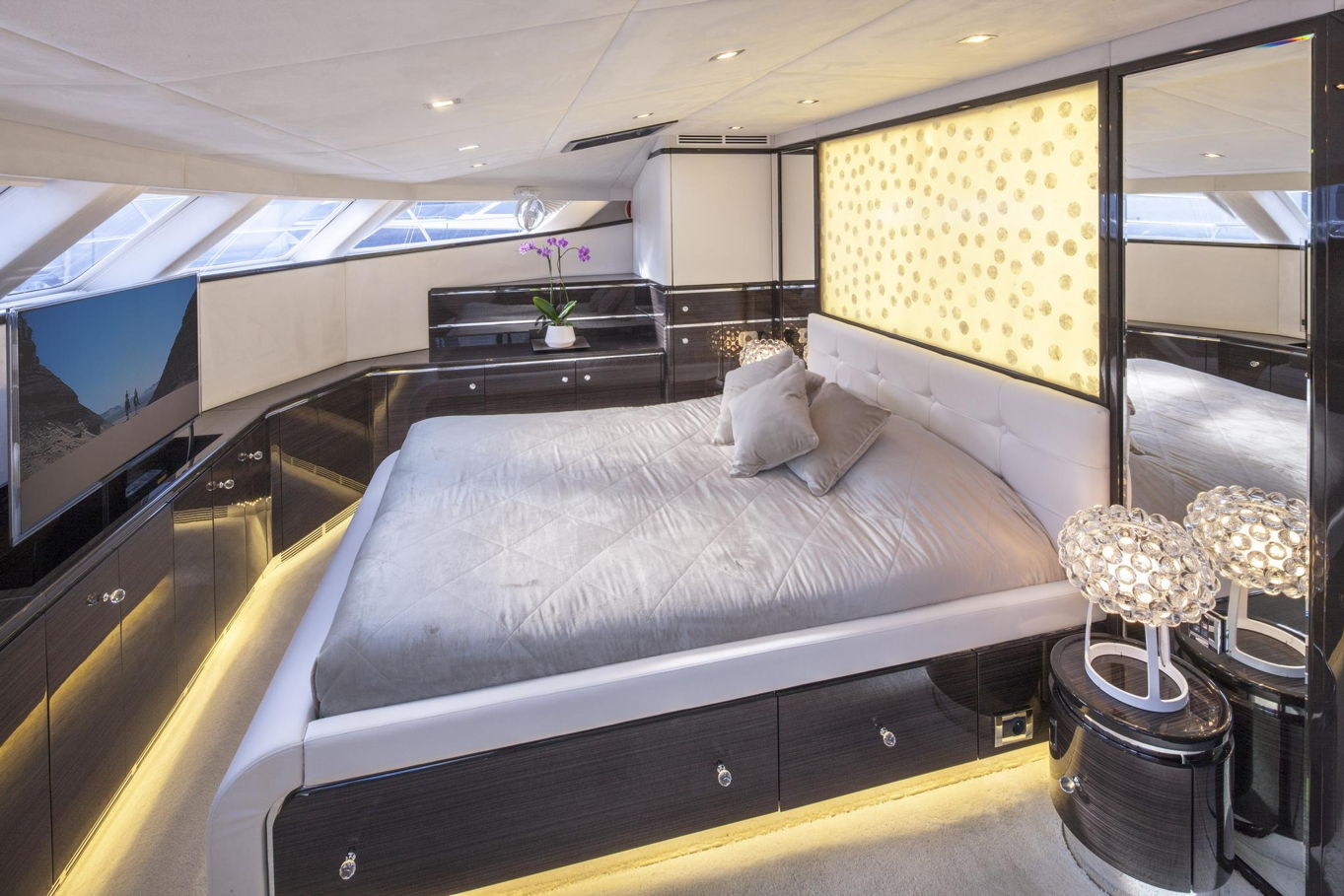On the bow of the yacht is a large captain's cabin with a double bed, spacious storage areas and a seating area. In the deck-house there are also three additional double cabins with private bathrooms, so the boat can accommodate a total of 8 people. All cabins are of course luxuriously decorated and offer plenty of storage space.