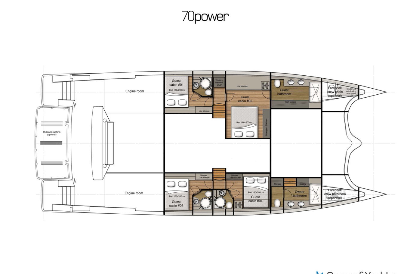 During the voyage you will be accompanied by our professional captain and hostess (for both of them on board there is a special private cabin designed not to interfere with your privacy), of which you can leave all your worries connected with travel and refreshments to them. Both are professionals who will fulfil even the most demanding wishes. You will have only one concern – to experience a truly unforgettable holiday on this wonderful yacht!