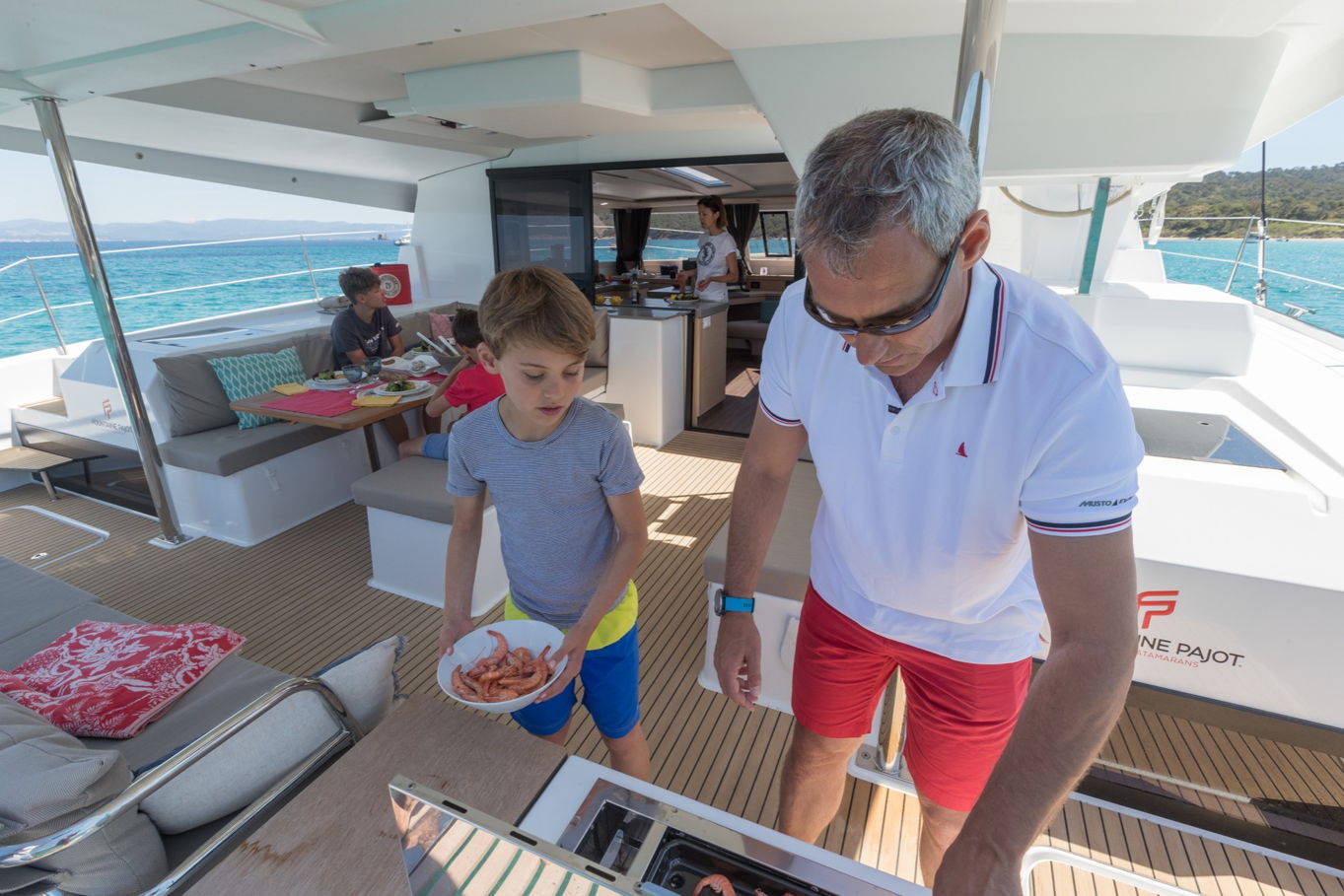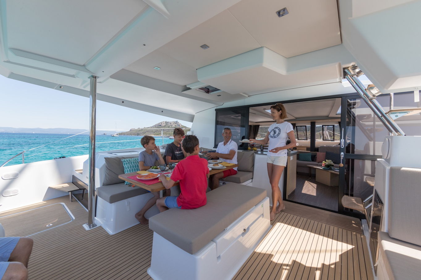 Na palubě je vše navrženo tak, abyste si svoji dovolenou dosyta užili. Určitě nejvíce oceníte venkovní relaxační zóny, ze kterých bude pohled na moře dechberoucí. Prostorné venkovní posezení na zádi lodi, opalovací lehátka a skákací síť na přídi či pohodlné opalovací matrace na střeše salonu. Která z těchto částí bude vaše oblíbená?